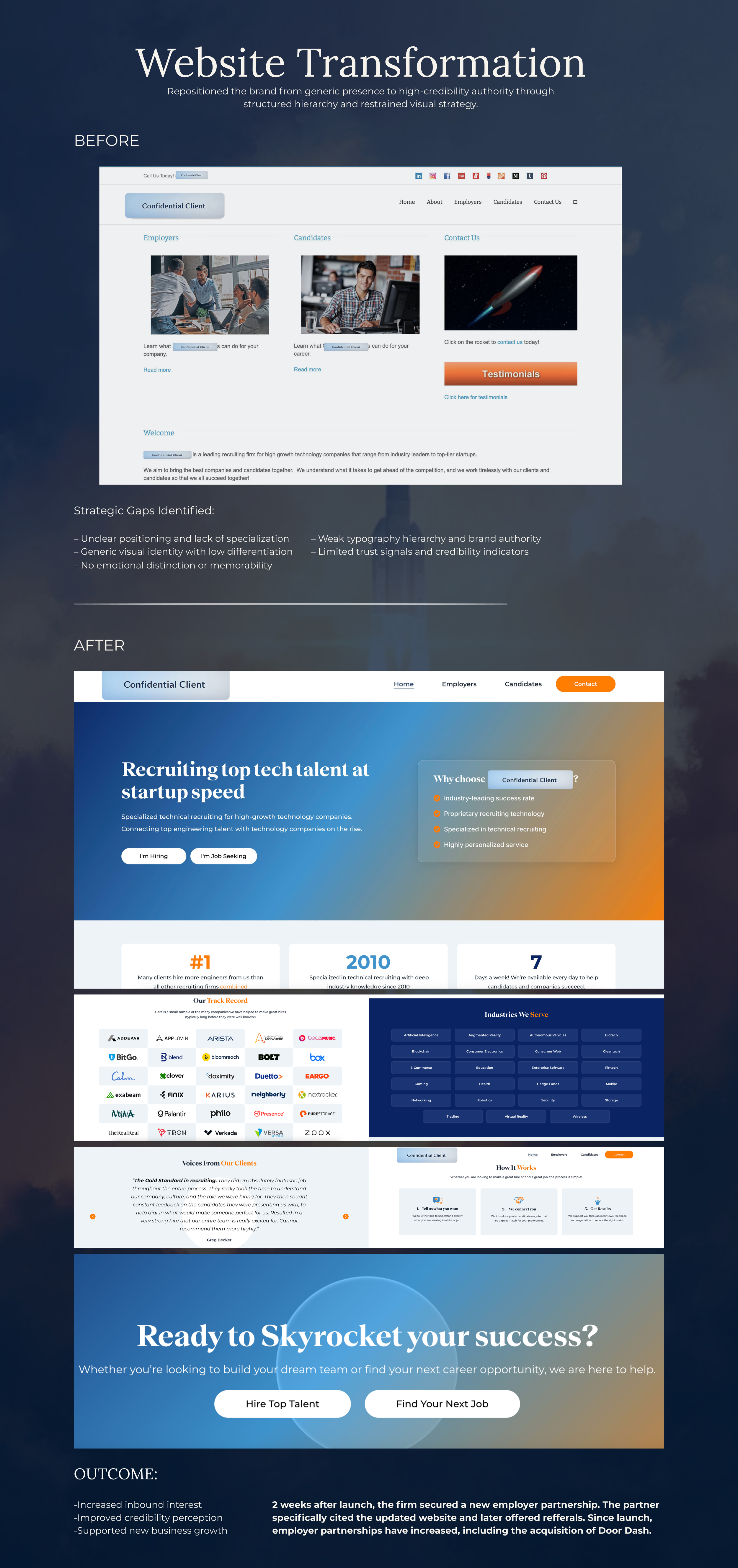 Due to confidentiality agreements, identifying details have been omitted. This case study accurately represents the strategic approach, visual direction, and outcomes while protecting proprietary information.